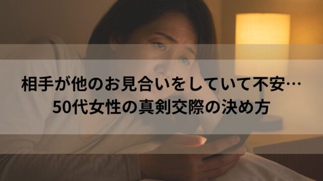婚活相手が他のお見合いをしていて不安…50代女性の真剣交際の決め方 2025-09-25 decosara https://saraponpon.com/wp-content/uploads/2025/06/50代からの婚活日和 いまこそ幸せを.jpg 婚活応援ブログ|50代からの婚活日和