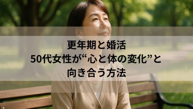 おすすめ更年期と婚活|50代女性が“心と体の変化”と向き合う方法 2025-09-27 decosara https://saraponpon.com/wp-content/uploads/2025/06/50代からの婚活日和 いまこそ幸せを.jpg 婚活応援ブログ|50代からの婚活日和