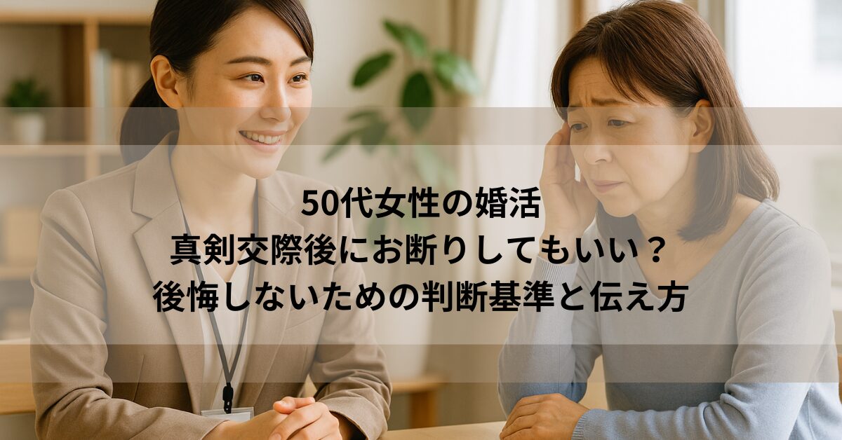 50代だからこそ、これからの時間や生活をより大切にしたいもの。無理に続けるより、誠実に断ることで新しいご縁へとつながります。罪悪感よりも「自分の幸せを守る勇気」を持つことが、婚活を成功へ導く大切な一歩なのです。